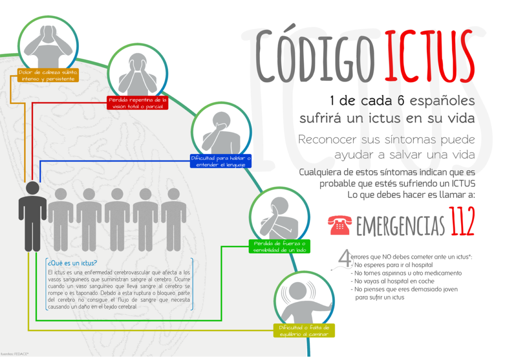 El ictus es una urgencia médica que se produce cuando se interrumpe de forma brusca el flujo sanguíneo al cerebro, provocando daño neuronal en cuestión de minutos. Sus síntomas suelen aparecer de manera repentina e incluyen dificultad para hablar, pérdida de fuerza o sensibilidad en un lado del cuerpo, desviación de la boca, alteraciones visuales o problemas de equilibrio. Ante cualquiera de estas señales, la actuación debe ser inmediata, ya que el tiempo es un factor decisivo para el pronóstico.