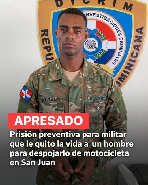 • Un juez de Las Matas de Farfán dictó tres meses de prisión preventiva contra un raso del Ejército acusado de matar a un hombre hoy.