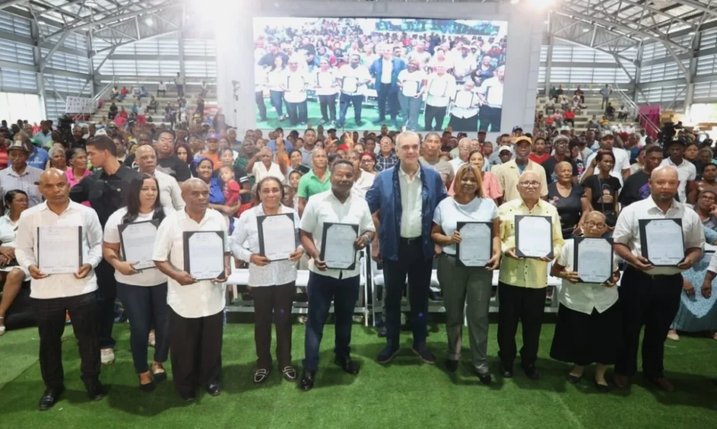 Abinader realizó la entrega simbólica de títulos a diez beneficiarios destacados quienes representaron a las cientos de familias favorecidas durante esta importante jornada de justicia.