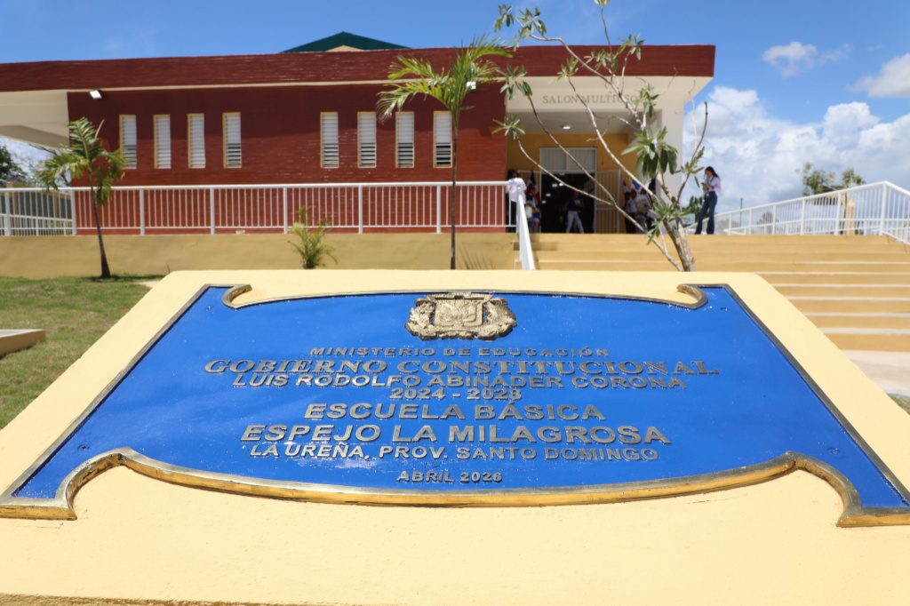 El presidente Luis Abinader inauguró este domingo la Escuela Básica Espejo La Milagrosa en el sector La Ureña tras catorce años de larga espera comunitaria.