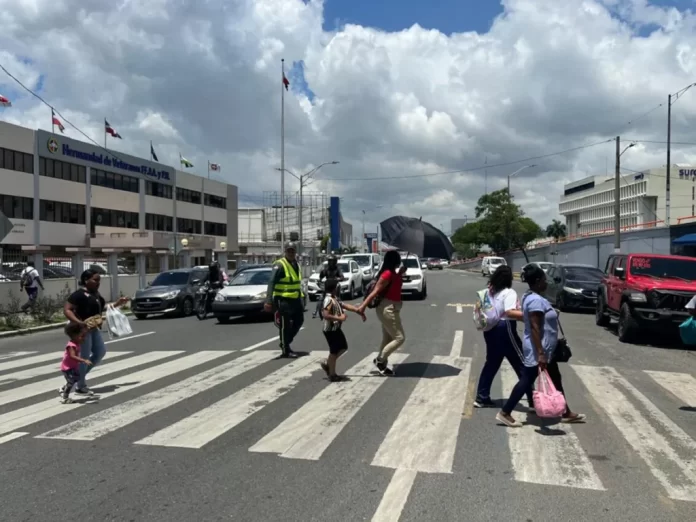 La presencia de agentes de Digesett en la avenida John F. Kennedy reduce el peligro para peatones que cruzan esta peligrosa vía capitalina