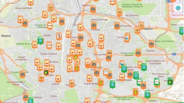 Esta es la herramienta más directa y fiable que puedes encontrar ya que en ella puedes seleccionar el tipo de combustible, ajustar la zona que te interesa y consultar tanto el listado de estaciones como su ubicación en el mapa. De este modo, no solo ves el precio, sino también qué gasolineras te quedan realmente a mano según tu recorrido. Puedes ver como ejemplo el mapa tal y como se muestra para Madrid:
